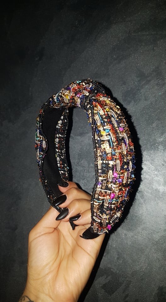 Le serre-tête Paris est brodé de fils colorés avec le doré en prodominance.