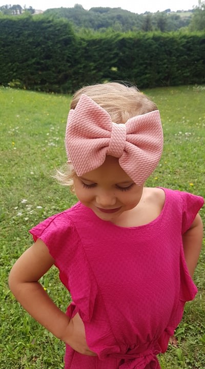 Notre bandeau fillette mesure environ 16 cm de diamètre, nous le conseillons pour une fillette jusqu'à 24 mois.